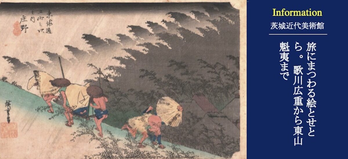 江戸時代の名所絵をはじめ、風光明媚な景勝地を描いた風景画など、現代にいたるまでの旅にまつえある多彩な絵画およそ200店を展開。200年以前のガイドブックや画家が装丁を手掛けた旅行雑誌といった旅のエトセトラにも注目します。
