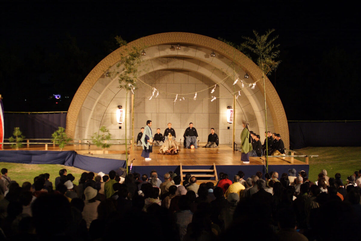 夕刻の和歌の浦を背景に、篝火の明かりで能を上演。海と炎がつくり出す幻想的な空間は、写真・映像映えすること間違いなしです!狂言、能の魅力が味わえる特別な舞台となっています。