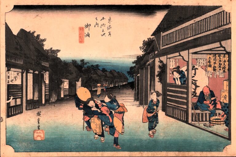 初代歌川広重《東海道五拾三次之内 御油 旅人留女》天保初期(1830 年代) 郵政博物館蔵 ※8/1~8/15 展示