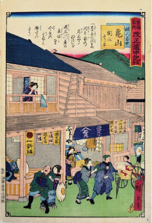 三代歌川広重《東海道名所改正道 中記 旅人留女 亀山 関迄壱り半》 1875 年 郵政博物館蔵 ※8/16~8/31 展示