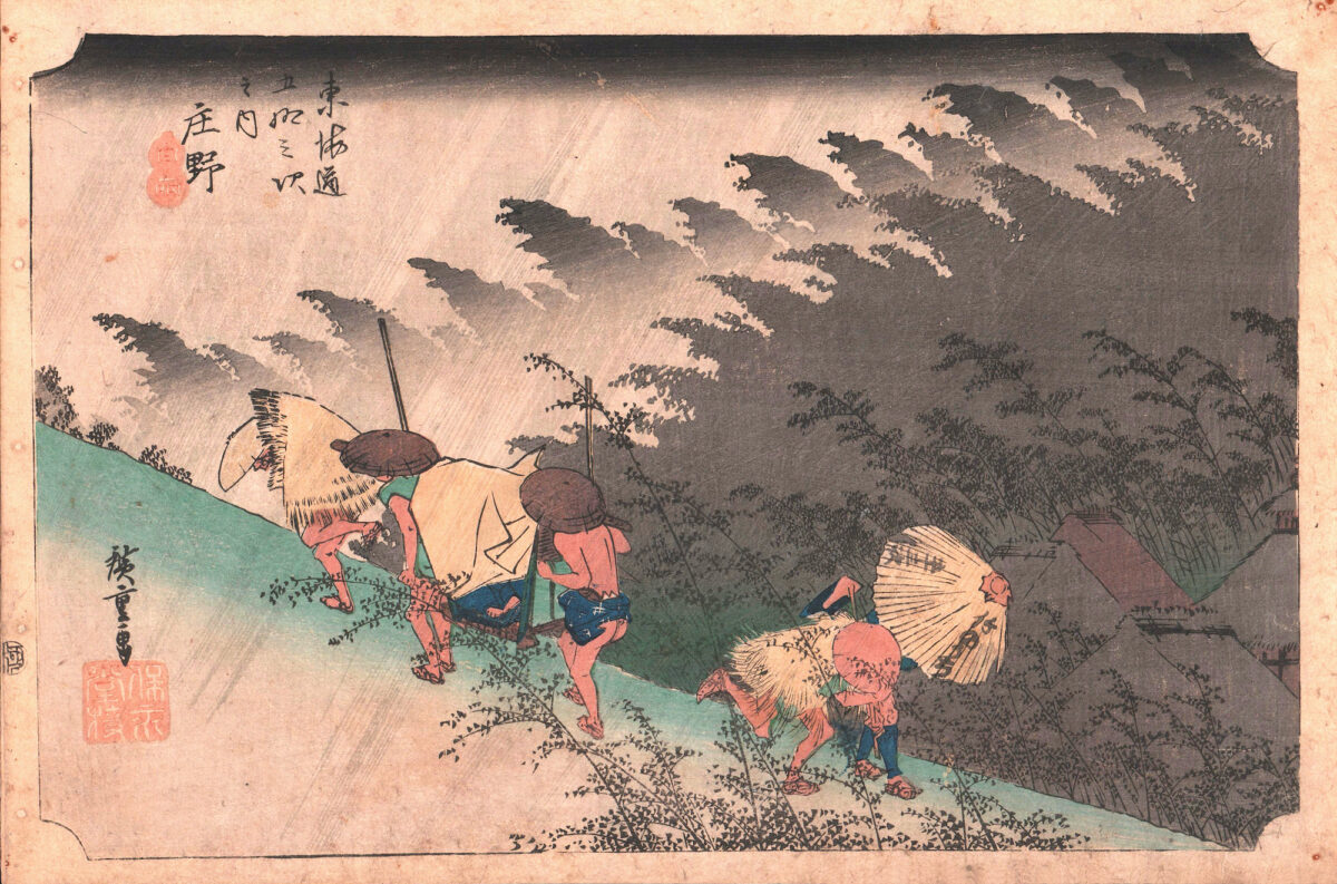 初代歌川広重《東海道五拾三次之内 庄野 白雨》天保初期(1830 年代) 郵政博物館蔵 ※8/16~8/31 展示