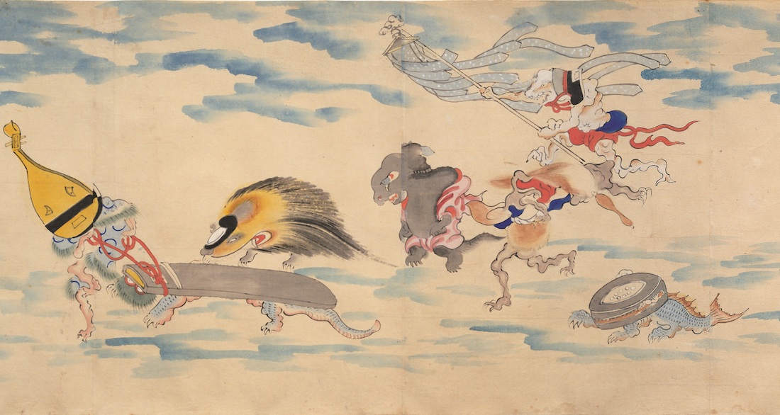 いっぽうで、器物の妖怪は百鬼夜行絵巻以降もつぎつぎと生まれてきます。それは明治時代に入っても続き、文明開化で登場した人力車、ランプ、洋傘といったものまで妖怪化されているほどです。日本の妖怪の種類が多いのはこうした器物の妖怪が数えきれないほどあることも大きな理由です。百鬼夜行というポピュラーな妖怪絵巻を糸口に妖怪にアプローチしていくと深く大きな妖怪世界が広がっていることを確認できるかもしれません。